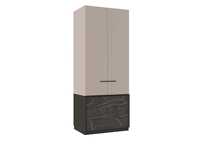 - Корпус выдвижных ящиков с фасадами Кашемир серый выполнен из ЛДСтП 16 мм в цвете Кашемир серый, а с фасадами под черный мрамор — в цвете Черный графит;