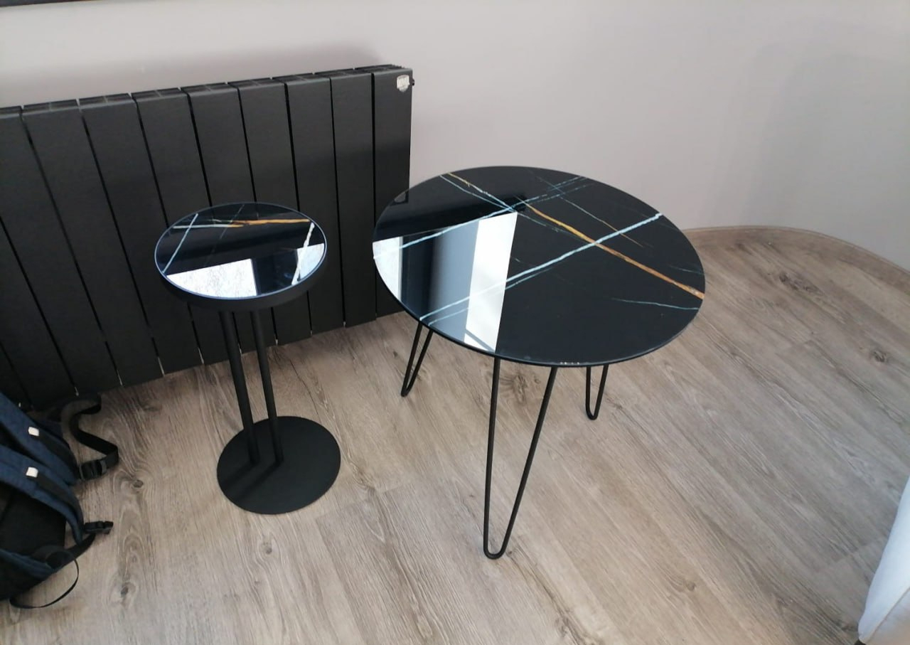 Стол журнальный «Хьюго» — элегантная в своей простоте модель в современном стиле. Основание и столешница соединены двумя опорами. За счет того, что они смещены к краю основания, столик можно установить вплотную с диваном или мягким креслом. Прочная конструкция столика полностью изготовлена из металла в черном цвете. Круглая столешница выполнена в стекле с УФ-печатью под мрамор.