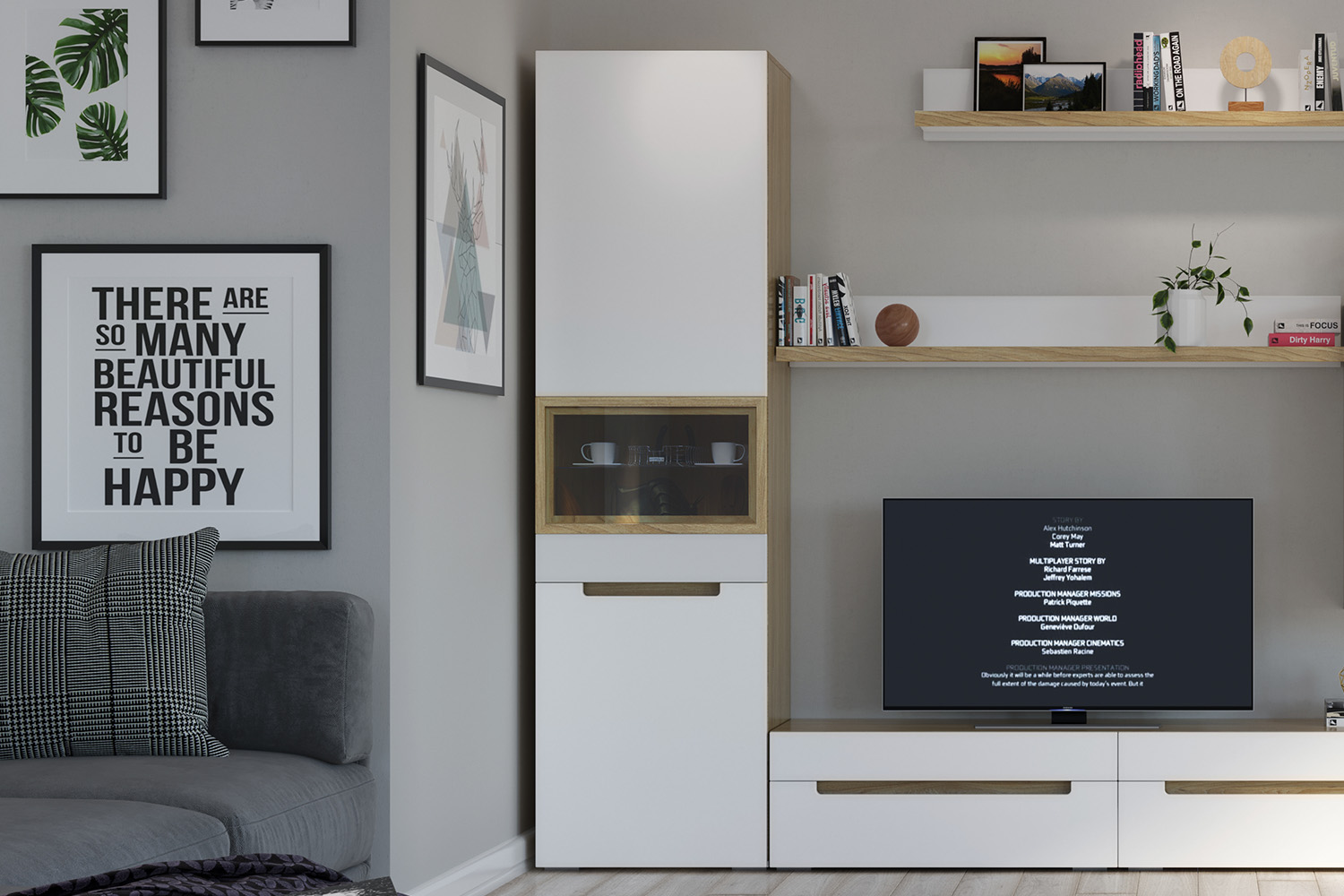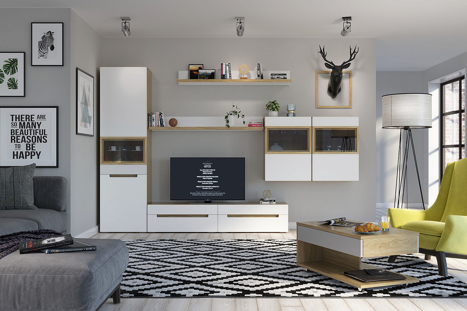 – описание: назначение для гостиной, размер 213.2x60.1x41.6 см, стиль современный, минимализм, цвет швейцарский вяз, белый.