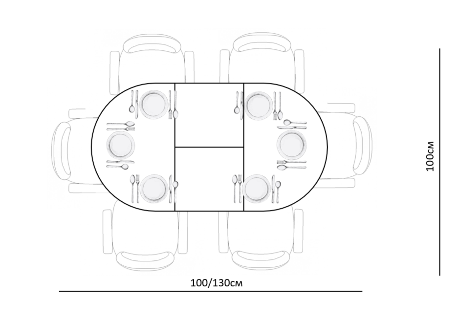 Размер стола компактный и в то же время достаточно вместительный для ежедневного использования 4 человек, по каждой стороне достаточно места чтобы поставить 4 широких стула вокруг стола; механизм раздвижения со стеклянной вставкой позволяет комфортно посадить еще 2 гостей. Компактный и очень функциональный стол, идеален для использования как на небольшой кухне, так и в качестве уютной обеденной зоны в гостиной.