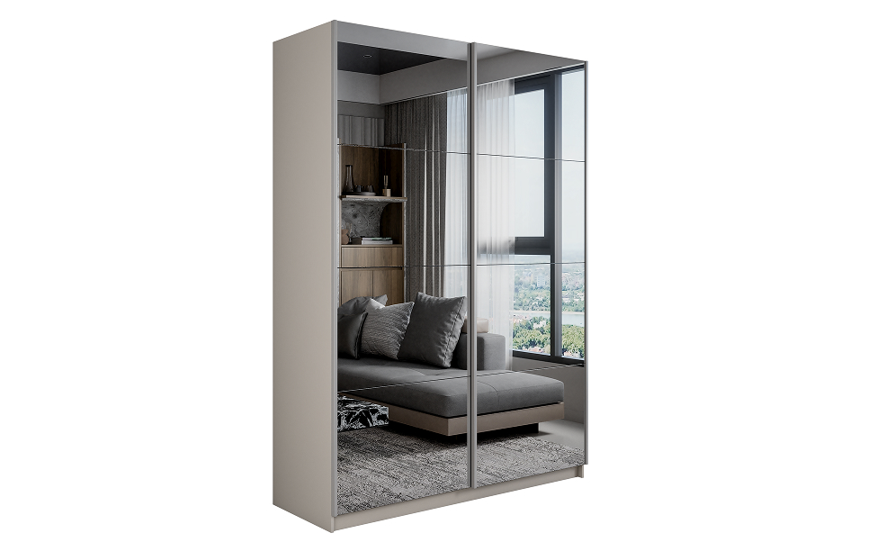 Купить Шкаф-купе Lux 160 х 230 с зеркальными дверцами / Кашемир в интернет-магазине мебели «Ангстрем»