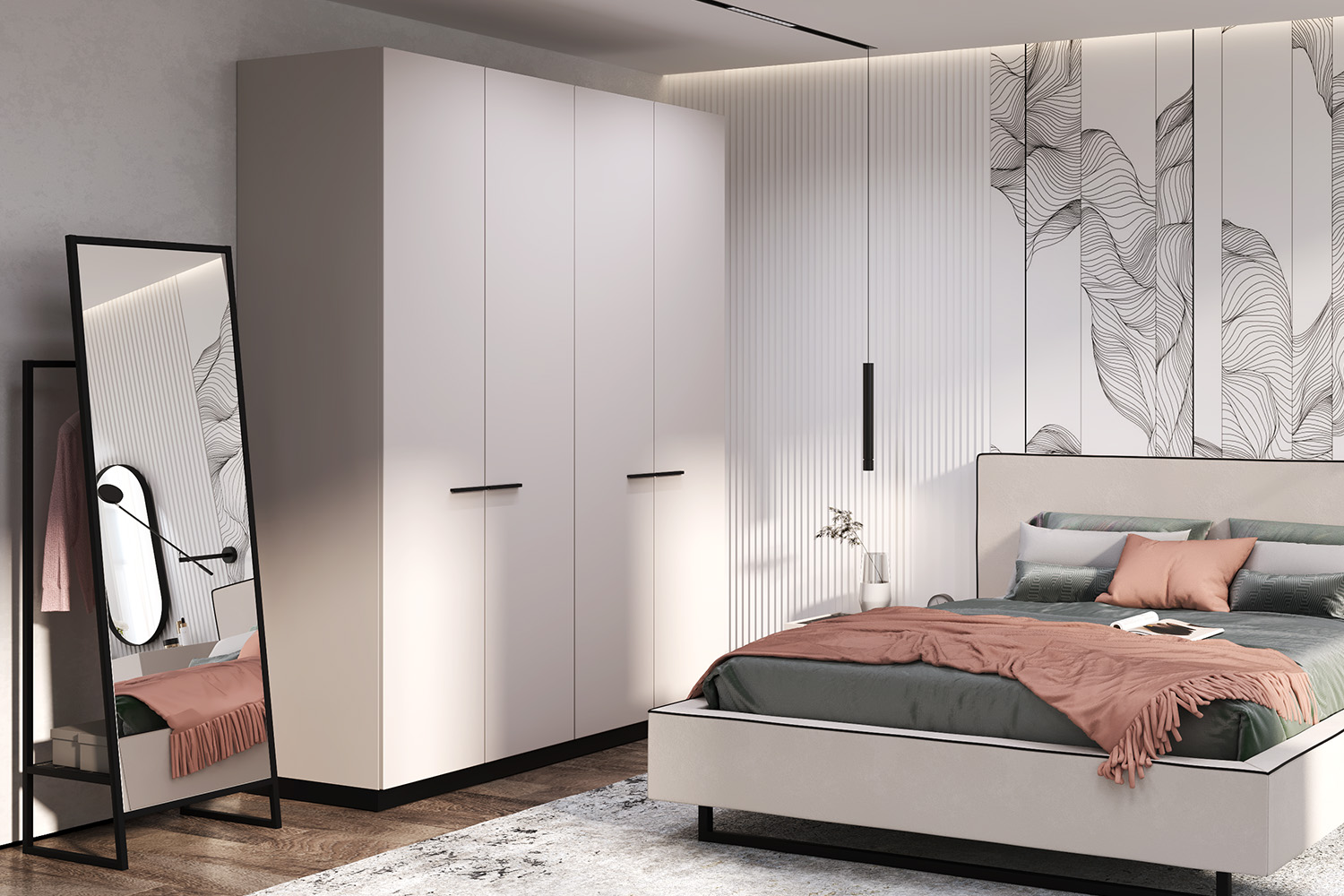 – описание: цвет кашемир серый, черный графит, размер 229.1x90x61.1 см, назначение для одежды, стиль современный, минимализм.