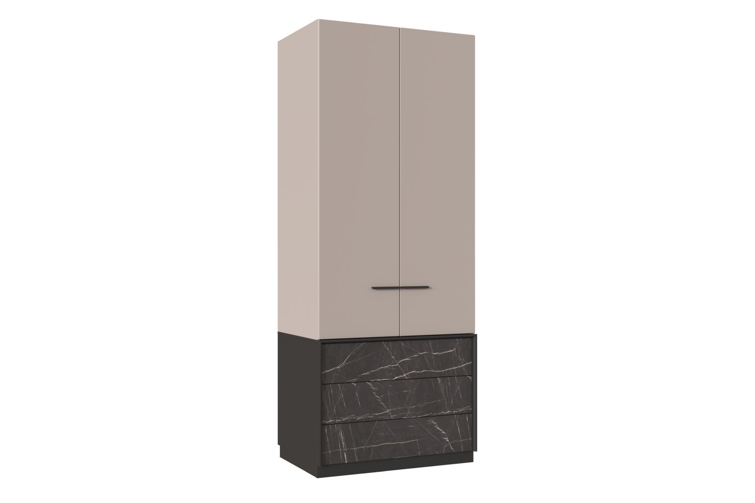 • Шкаф двухдверный с одной полкой ЛДСП и тремя выдвижными ящиками;